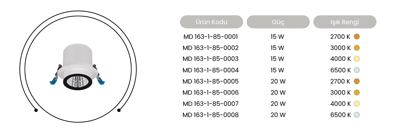 Masialux Ledli Sıva Altı Spot Armatür MD 163-1-85