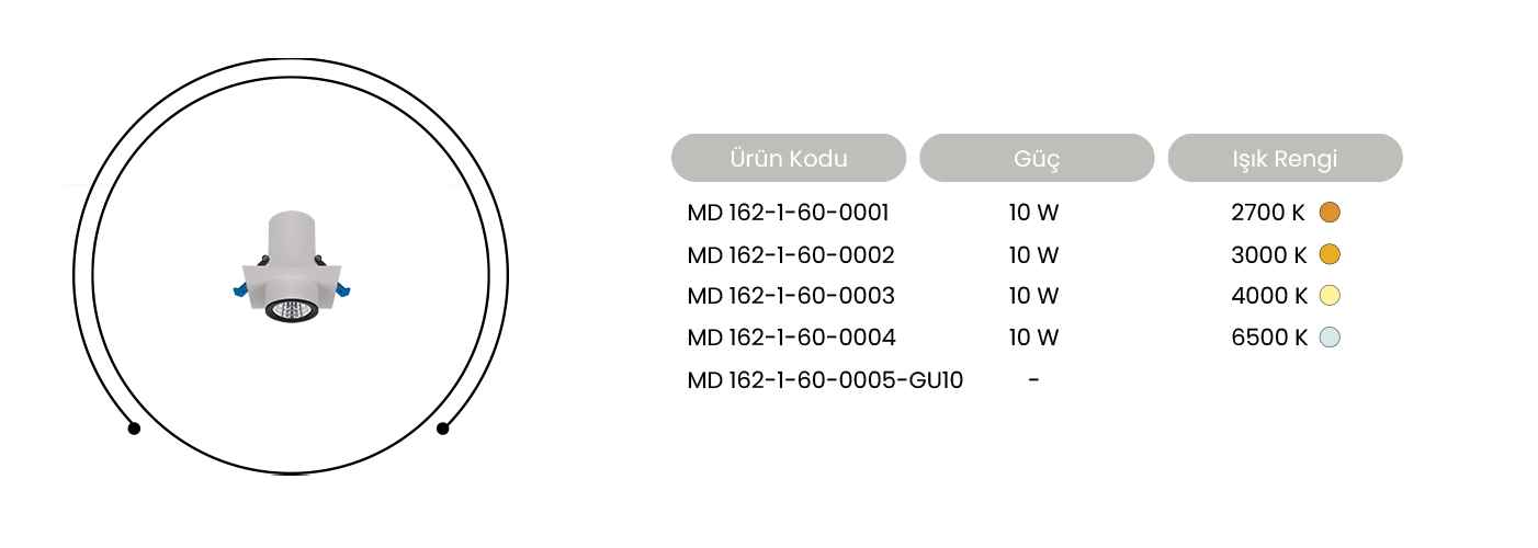 Masialux Ledli Sıva Altı Spot Armatür MD 162-1-60