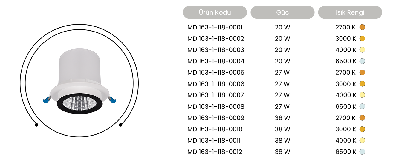 Masialux Ledli Sıva Altı Spot Armatür MD 163-1-118
